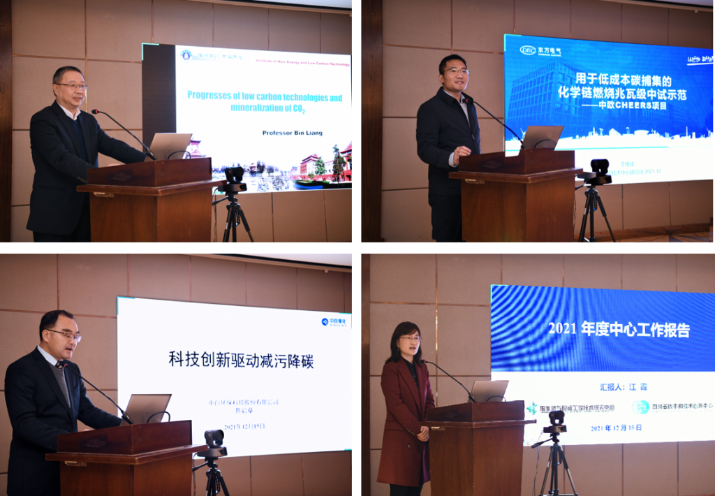 梁斌教授、东方锅炉李维成高工和中自环保陈启章高工还分别做了题为“低碳与二氧化碳矿化技术进展”、“用于低成本碳捕集的化学链燃烧兆瓦级中试示范”和“科技创新驱动减污降碳”的技术报告。