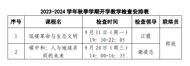 就学院本学期开设课程,现已列出开学教学检查安排表。学院领导班子成员及教学管理人员将按时进行课堂巡视、检查。