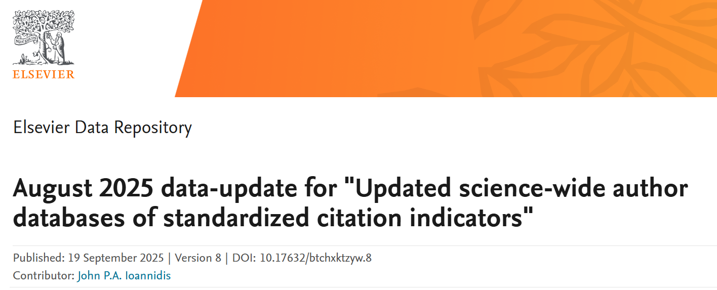 2025年9月19日,斯坦福大学(Stanford University)与国际权威学术出版社(Elsevier)共同发布2025年全球前2%顶尖科学家榜单(World's Top 2% Scientists),分为“终身科学影响力排行榜(Career-long Impact)”和“年度科学影响力排行榜(Single-year Impact)”两大部分,其中终身榜单聚焦学者学术生涯的综合影响力,年度榜单关注学者上一年度的学术成就。该榜单基于引用次数、H因子、合著者修正的hm因子等6项指标,从全球700万名科学家中遴选出世界排名前2%的科学家。微密猫 江霞教授、代忠德教授、孙登荣研究员、朱祥研究员入选“年度科学影响力排行榜”。