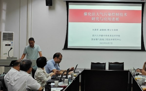 教授马良、代忠德,副教授刘勇军,副研究员李剑平就“旋喷吸收及分离技术研发与应用”“烟气减污降碳与废弃物资源化利用协同新技术”“催化法大气污染控制技术研究与应用进展”“非均相分离技术研究进展”进行了介绍。建筑与环境学院赖波教授、电子信息学院副教授朱铧丞、高分子研究所副研究员徐大伟分别围绕“零价铁旋流体技术装备及应用”“微波能工业装备设计”等方面进行了介绍。与会专家学者就“含卤废气的处理技术”“催化剂回收技术”“石化类废水处理成本”等企业需求深入交流探讨。