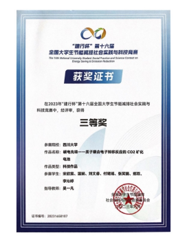 指导教师常玉龙:全国大学生节能减排社会实践与科技竞赛是以“节能减排、绿色能源”为主题,非常契合我们学院零碳能源、资源碳中和、碳捕集利用、减污降碳协同等科研方向。碳中和创新实践班也是以此为导向,鼓励学生参与各项创新创业比赛和科研训练中,培养“双碳”领域的栋梁之才。希望更多的优秀同学能够参与到我们学院碳中和创新实践班,也希望多多参与节能减排社会实践与科技竞赛,贡献川大智慧。